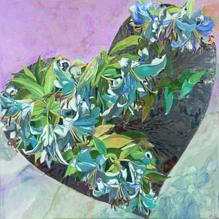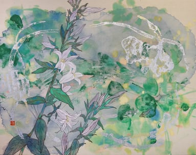 野口は風景の中に花があり、花の中に季節や風を纏う。長いキャリアを持つ二人だが意外にもいままで出品接点は無いという。