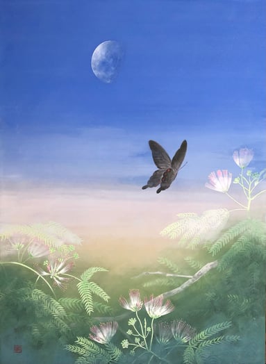 これは日本の伝統を尊重しつつ、現代の鼓動に共鳴し、伝統的な画法の指導を受け、