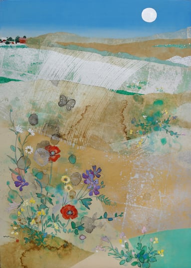 彼女たちに共通する主題は花と風景。伴戸の花は凛とした佇まいが在り、風景は画面の広さよりもより広い。