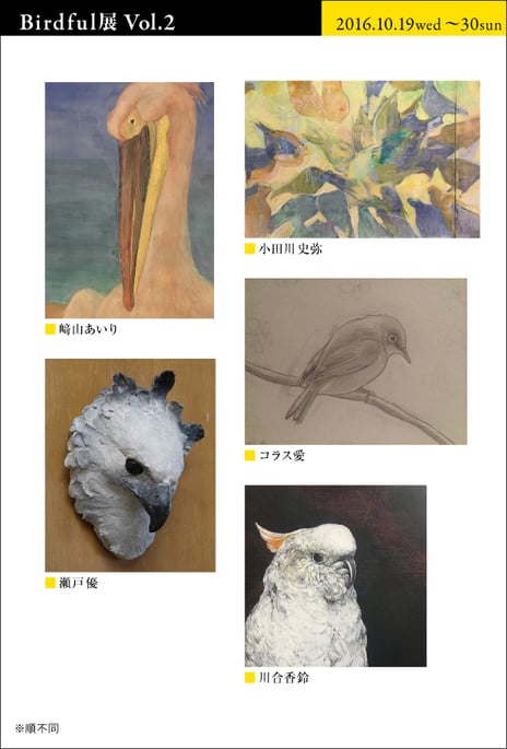 昨年のメンバーのうち2名が入れ替わりますが、題名の如くに皆さん‘鳥’をモチーフに作品制作をした