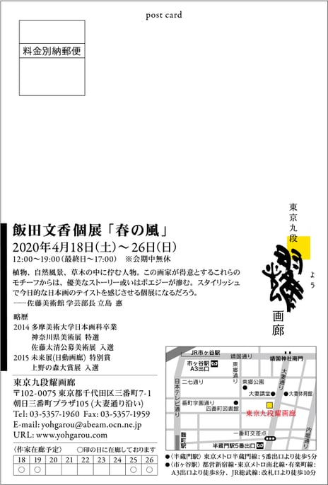 12:00〜19:00(最終日 〜17:00) ※会期中無休