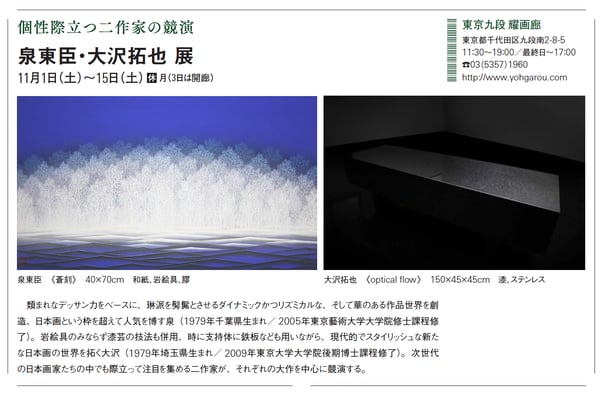 〈個性際立つ二作家の競演―泉東臣・大沢拓也展ー〉(11月1日~11月15日)が、
